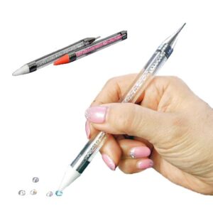ラインストーンを指やピンセットでつまむより、ワックスペンを使うと素早く・きれいに貼れます。チップが消耗したら替えチップで交換できるのも便利です。
